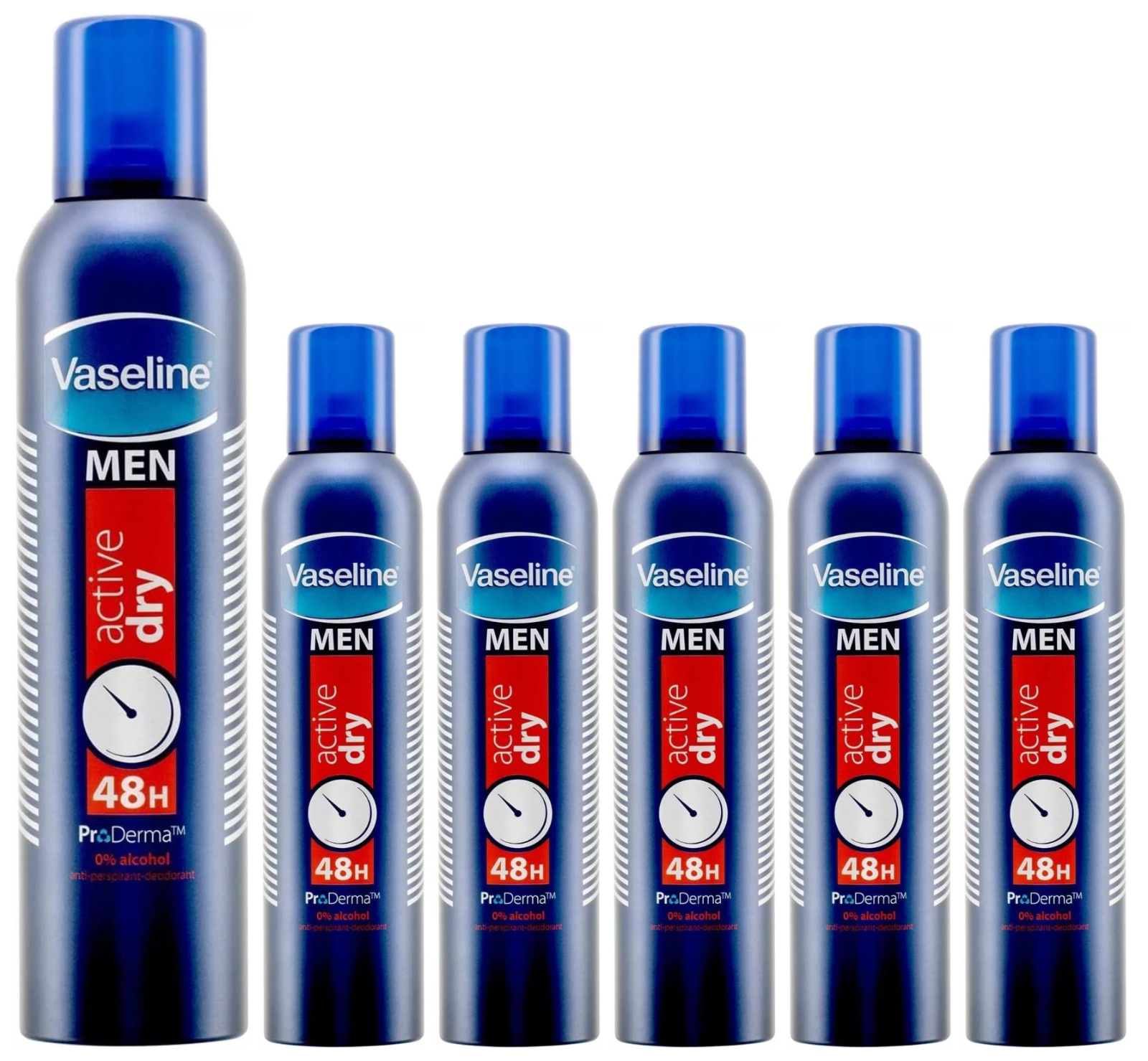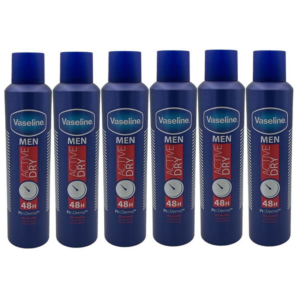 6 x 250ml Vaseline Men Active Dry Anti-Perspirant Deodorant Body Spray