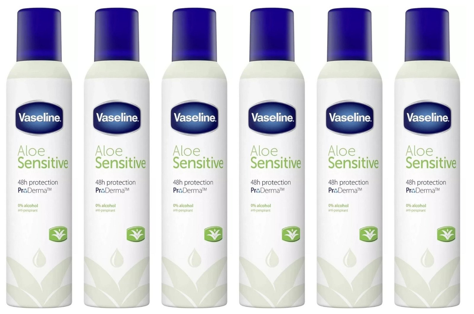 6 x 250ml Vaseline Aloe Sensitive 48H ProDerma Anti Perspirant Deodorant Spray
