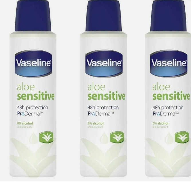 3x Vaseline Aloe Sensitive Pro Derma Anti-perspirant Deodorant Aerosol 150ml