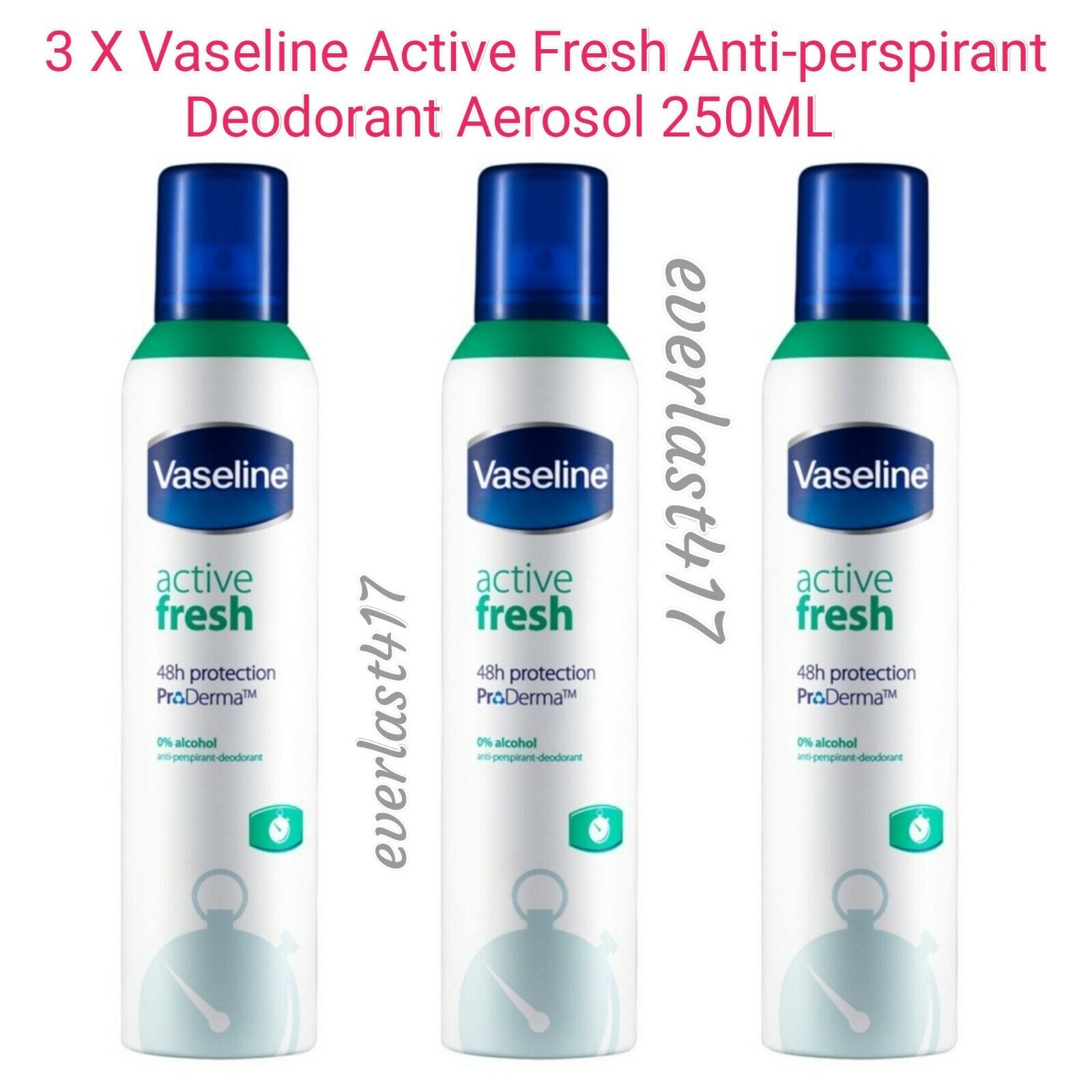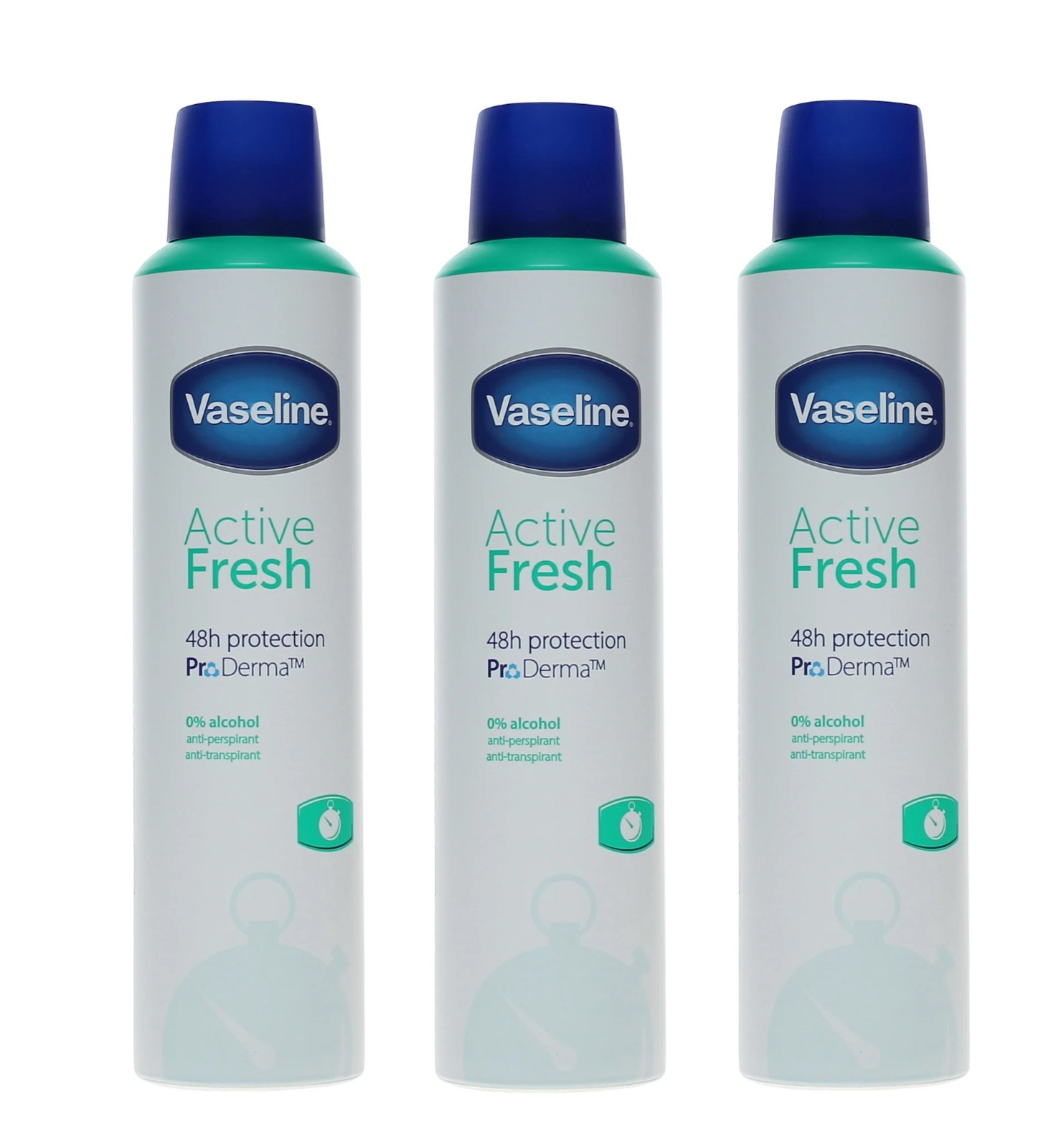 Vaseline Active Fresh Anti-Perspirant Deodorant Aerosol 0% Alcohol, 3 x 250ml