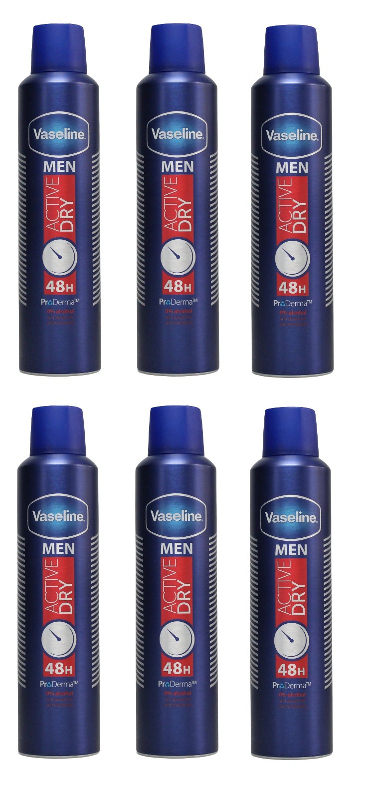Vaseline 6 x 250ml Men Active Dry Anti-Perspirant Deodorant Body Spray