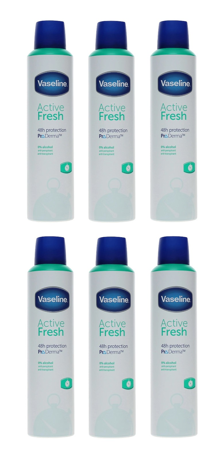 Vaseline Active Fresh Anti-perspirant Deodorant Aerosol 6 x 250 ml Body Spray