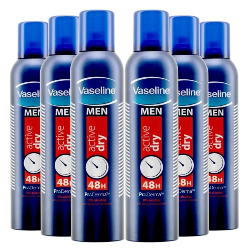 6 x VASELINE MEN ACTIVE DRY 48hr PROTECTION ANTI-PERSPIRANT DEODORANT 250ml