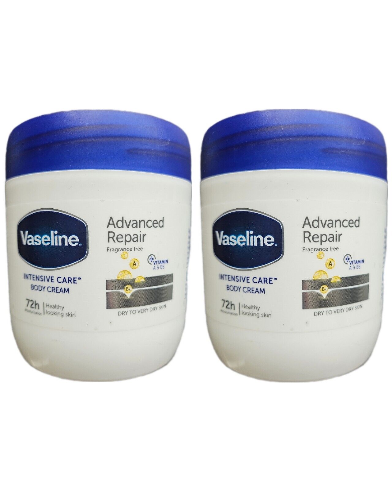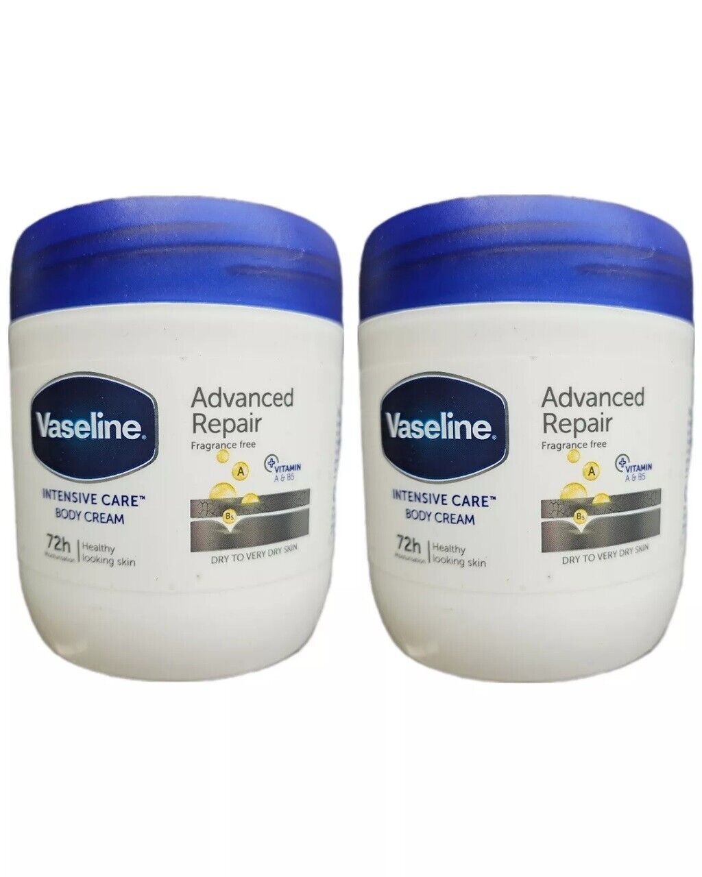2 X Vaseline Intensive Care Body Cream Advanced Repair Fragrance Free 400ml.