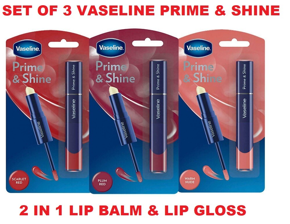 Vaseline Prime & Shine Lip Balm & Lip Gloss Warm Nude Plum Red Scarlet Red Set