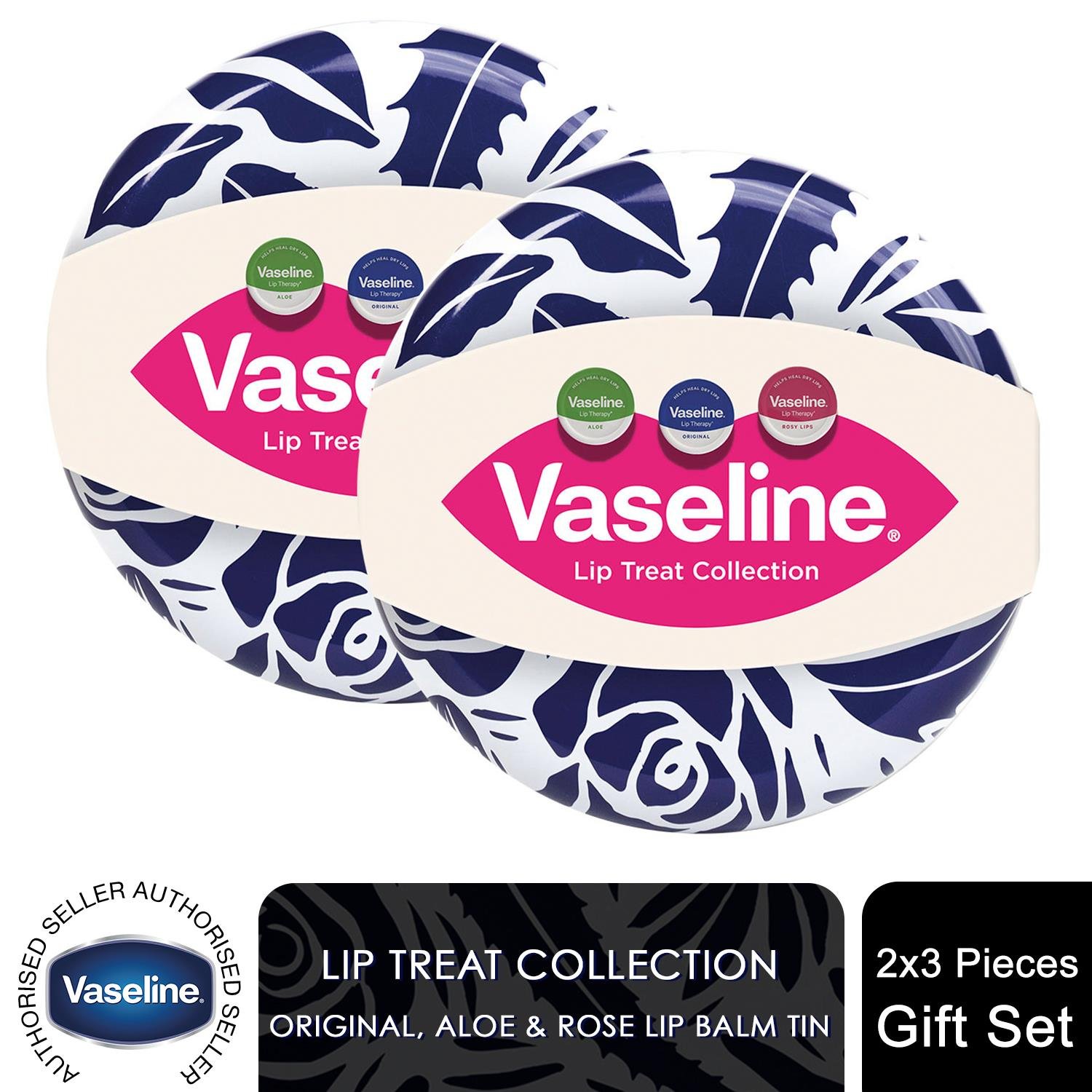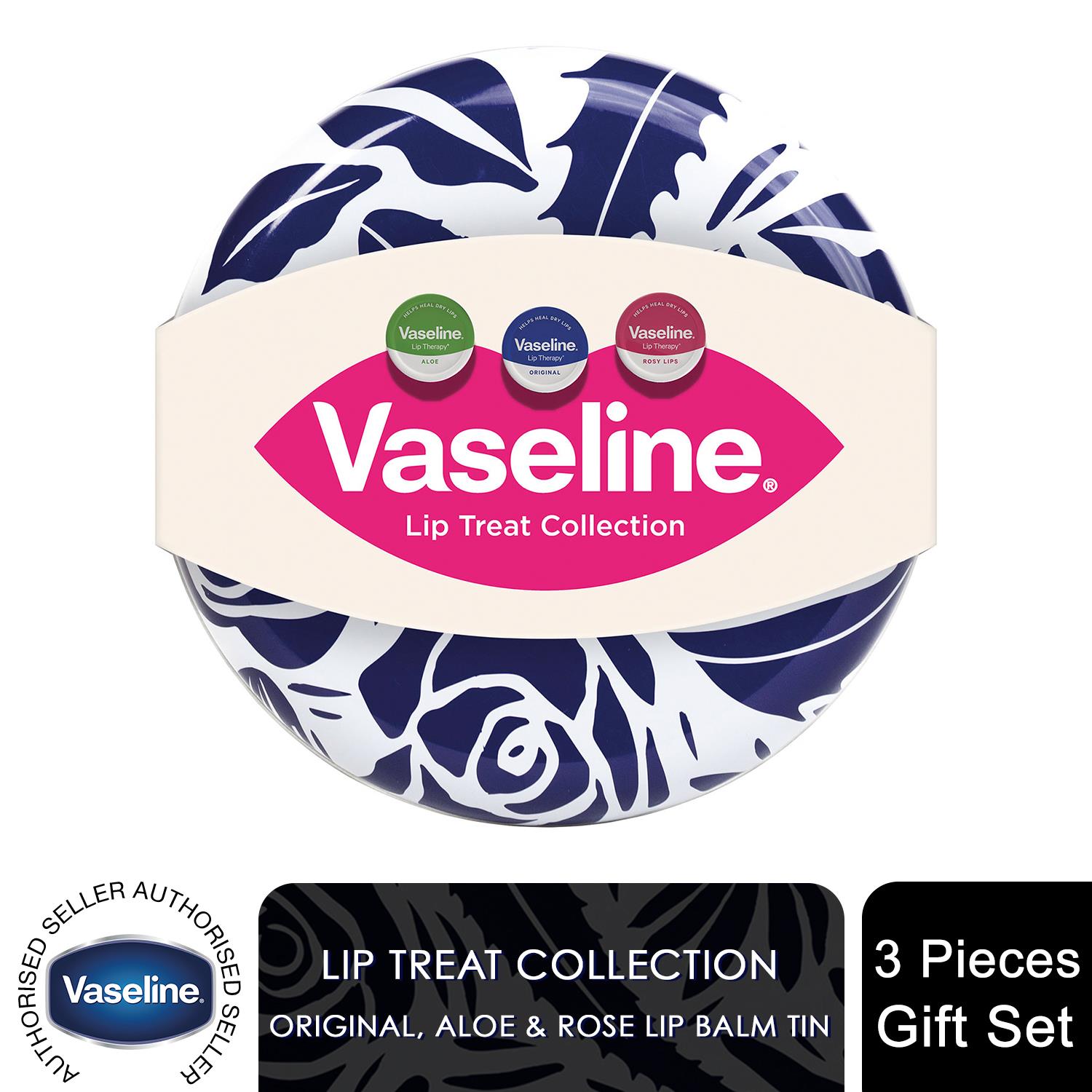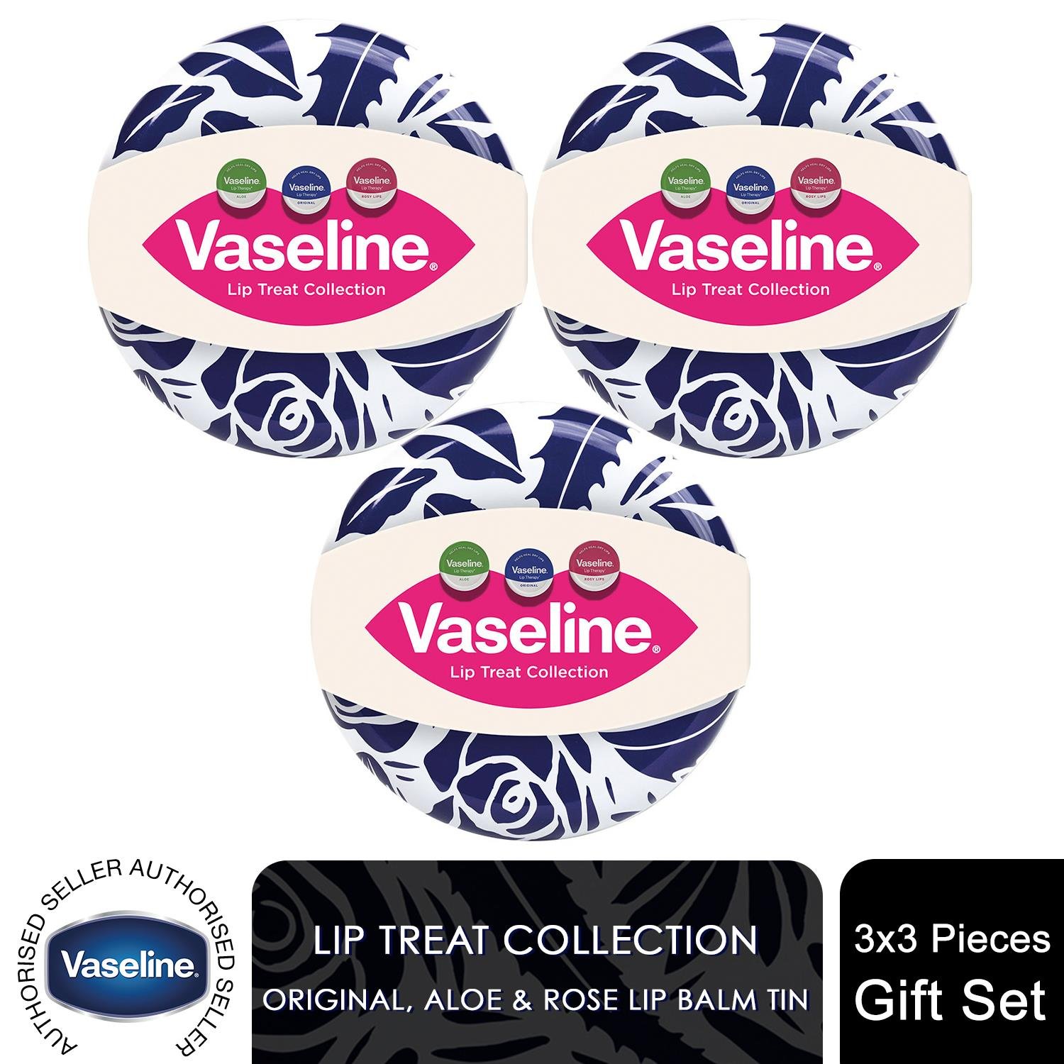 Vaseline Lip Treat Collection Gift Set Tin with Rosy Aloe Original Balm Trio