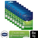 Vaseline Lip Therapy With Petroleum Jelly Balm Sticks, Aloe Vera, 8 Pack, 4gm