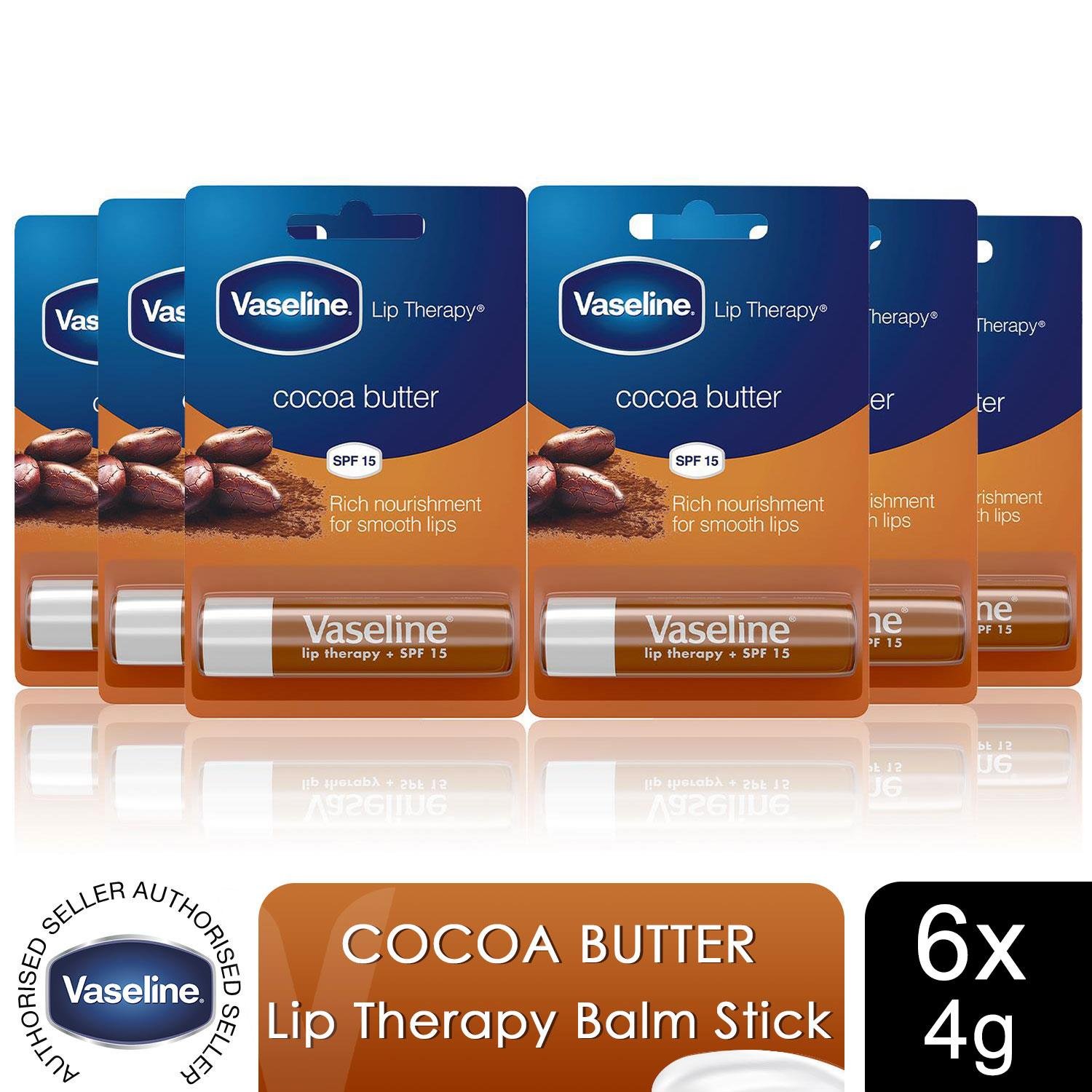 Vaseline Lip Therapy Balm Sticks, Cocoa Butter, 4 Pack, 4gm