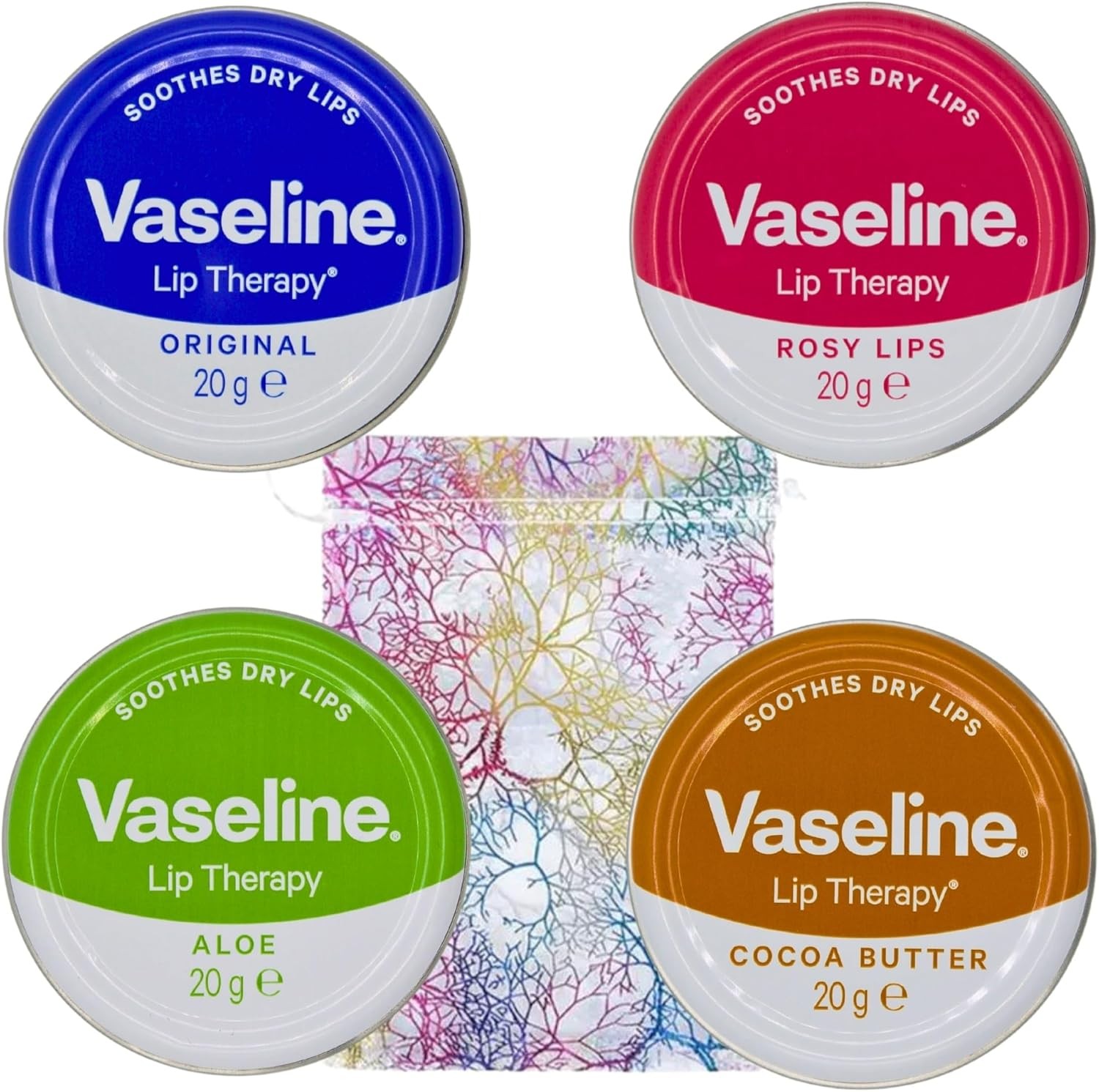 Vaseline Lip Balm 4 X 20g (Rosy Lips, Cocoa Butter, Aloe, Original) Lip Balm Se