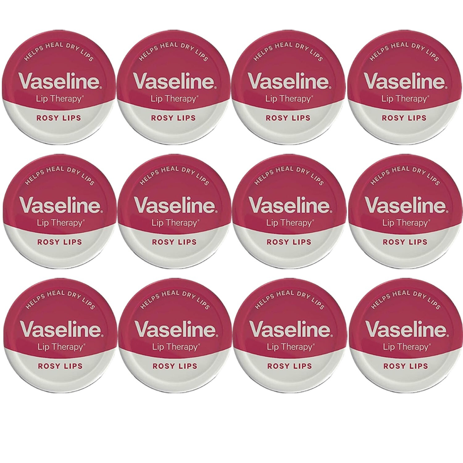 12 X Vaseline Petroleum Jelly Lip Balm, Rosy Lips - 20g
