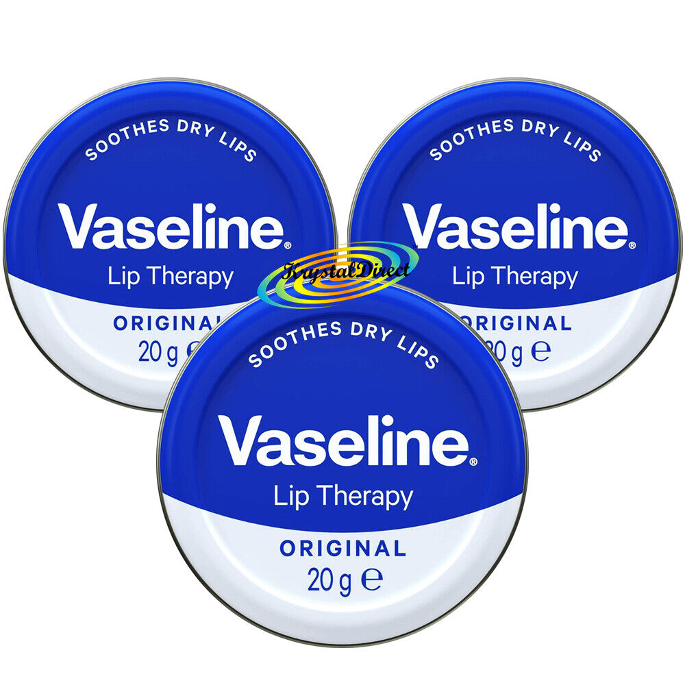 3x Vaseline Lip Balm Therapy Petroleum Jelly Original 20g Travel Size Pot
