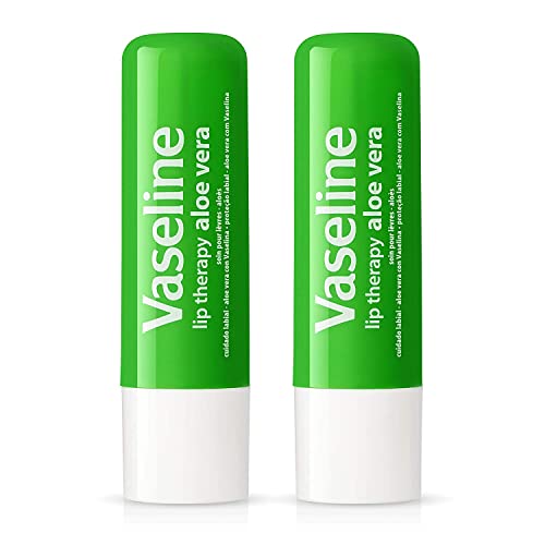 Vaseline Lip Therapy With Petroleum Jelly Balm Sticks, Aloe Vera, 2 Pack, 4gm