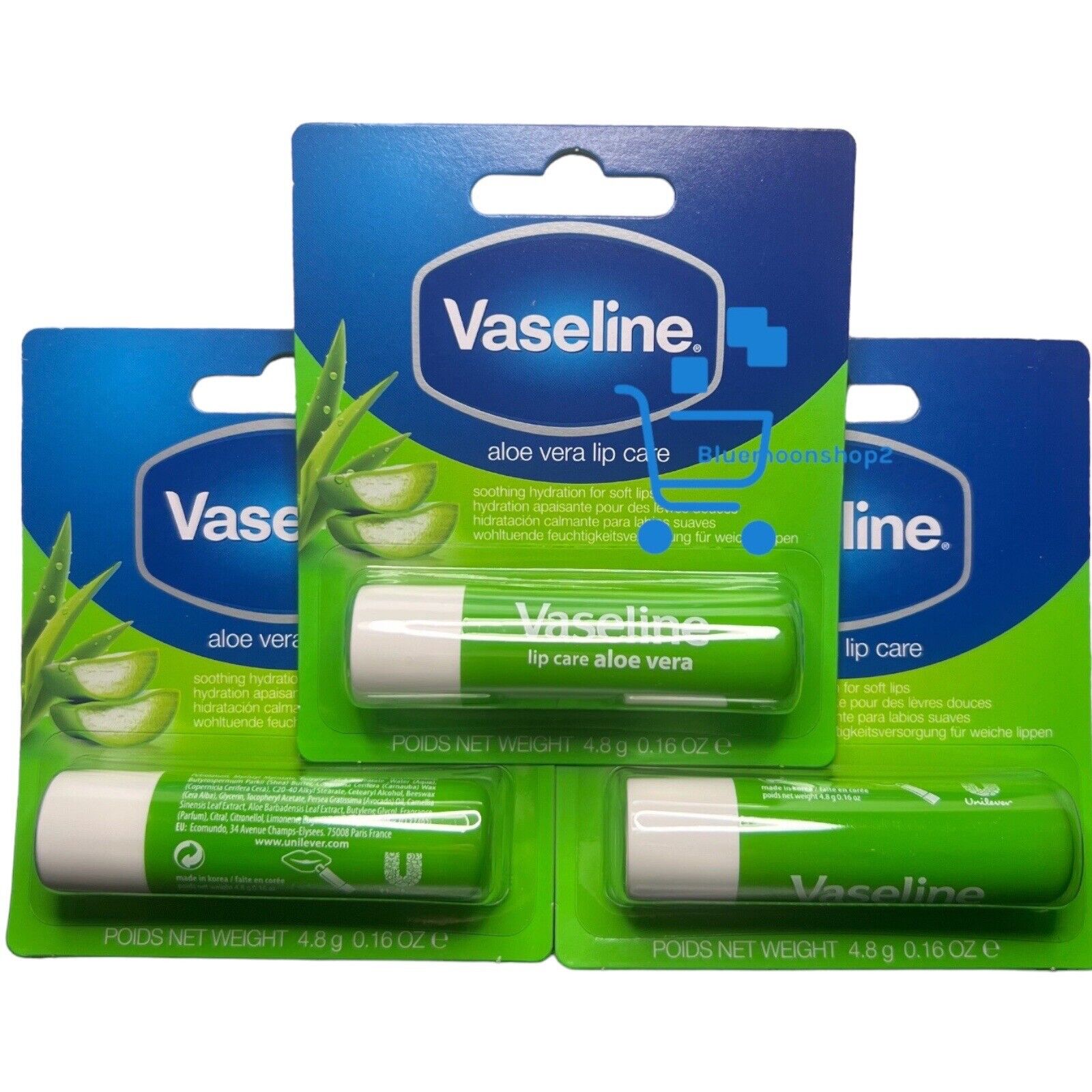 3x Vaseline Lip Stick Green Aloe Vera Lip Therapy Balm 4.8g Dry Cracked Lips