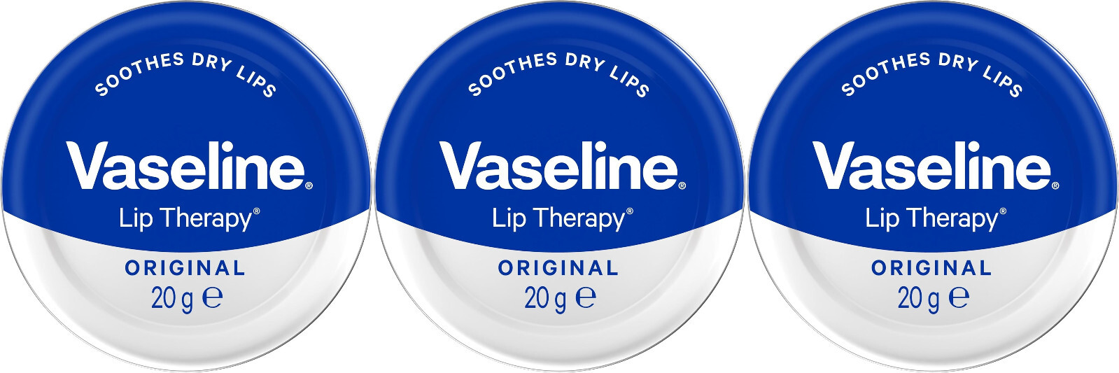 3 x VASELINE ORIGINAL LIP THERAPY SOOTHES DRY LIPS 20G FREE DELIVERY