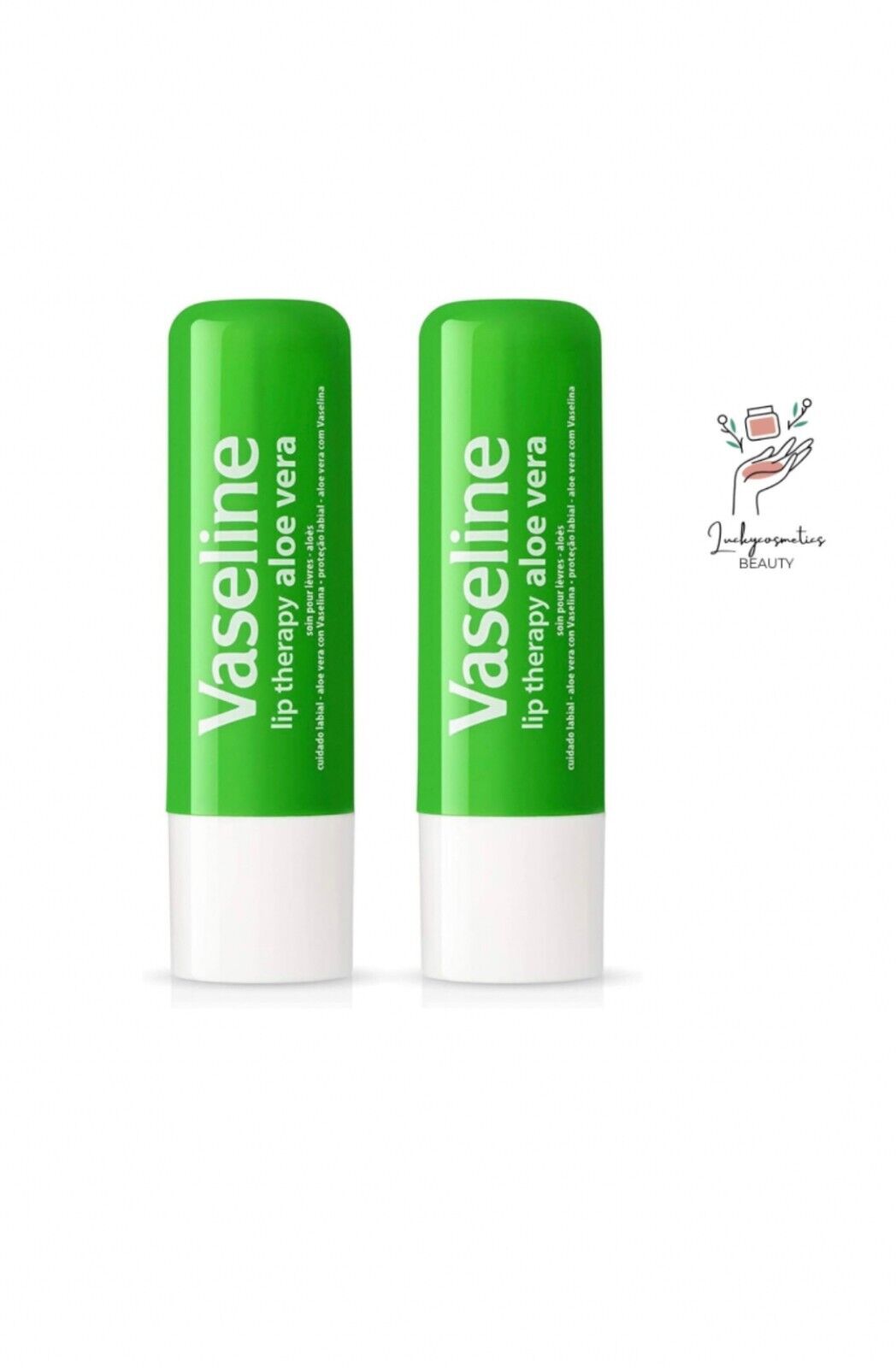 2x Vaseline Stick Green Aloe Vera Lip Therapy Balm 4.8g