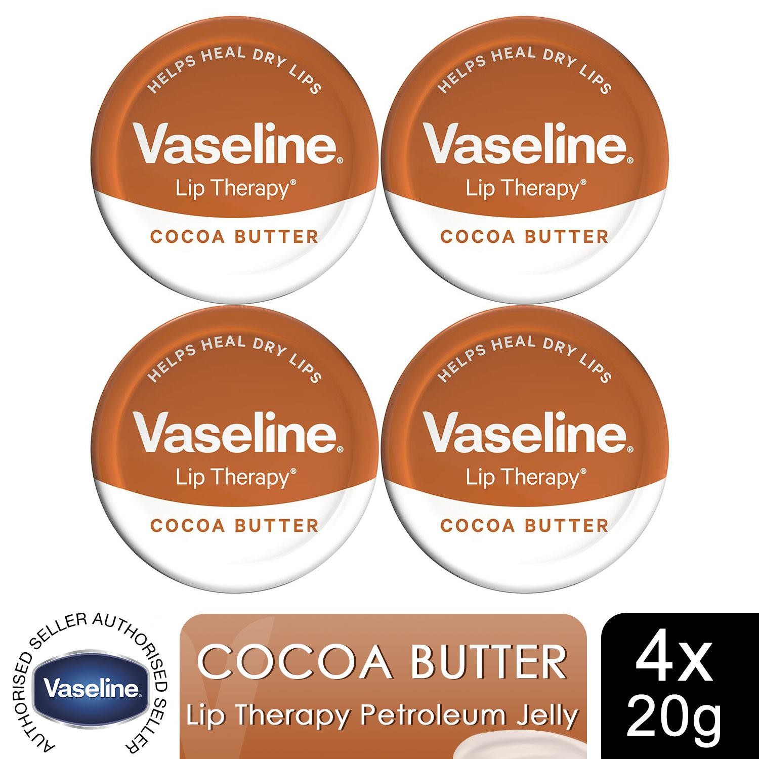 Vaseline Lip Therapy Petroleum Jelly, Cocoa Butter, 4 Pack, 20gm