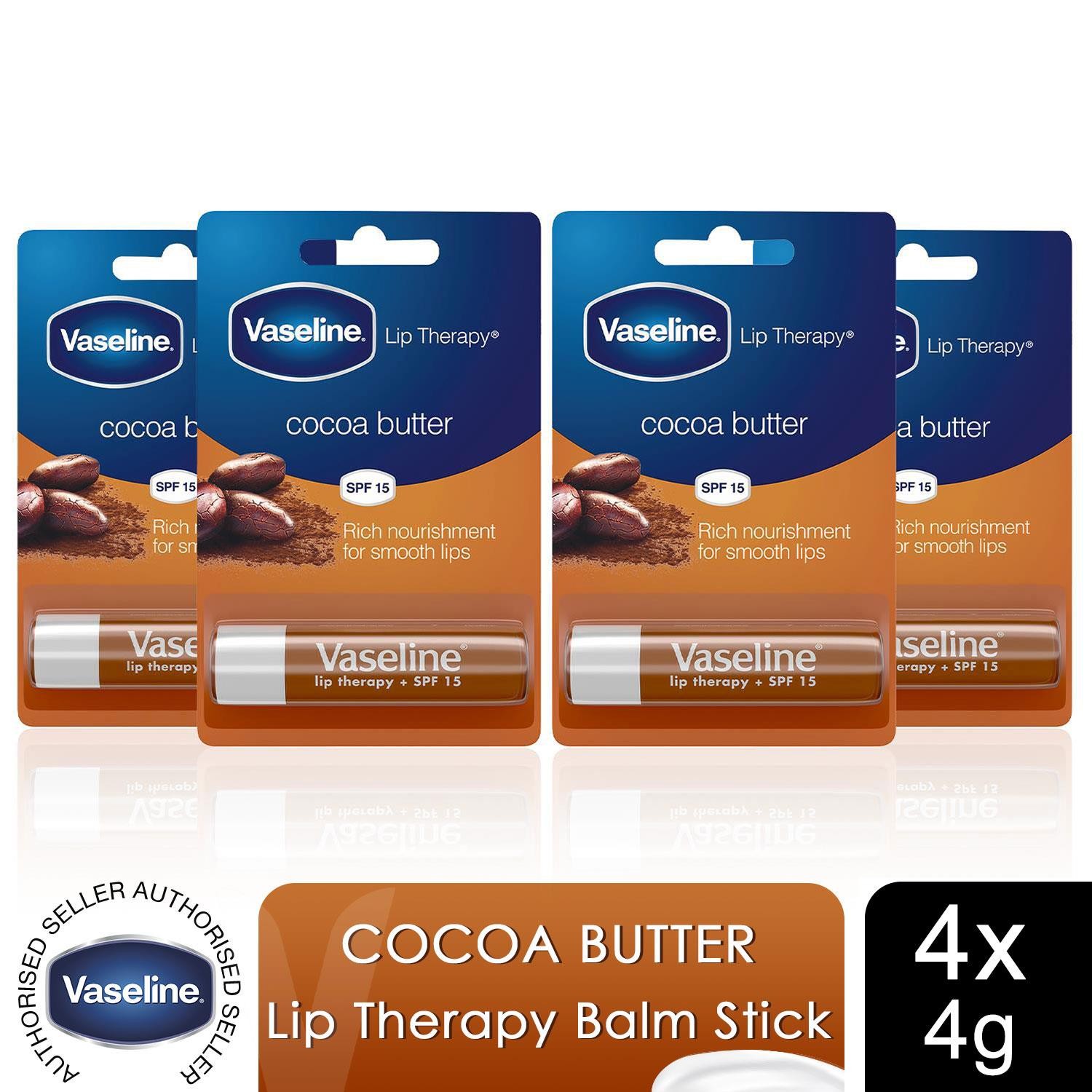 Vaseline Lip Therapy Balm Sticks, Cocoa Butter, 4 Pack, 4gm