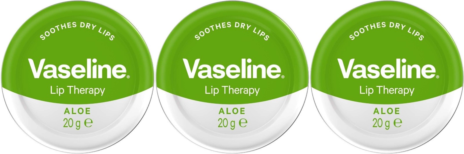 3 x VASELINE ALOE ORIGINAL LIP THERAPY SOOTHES DRY LIPS 20G FREE DELIVERY