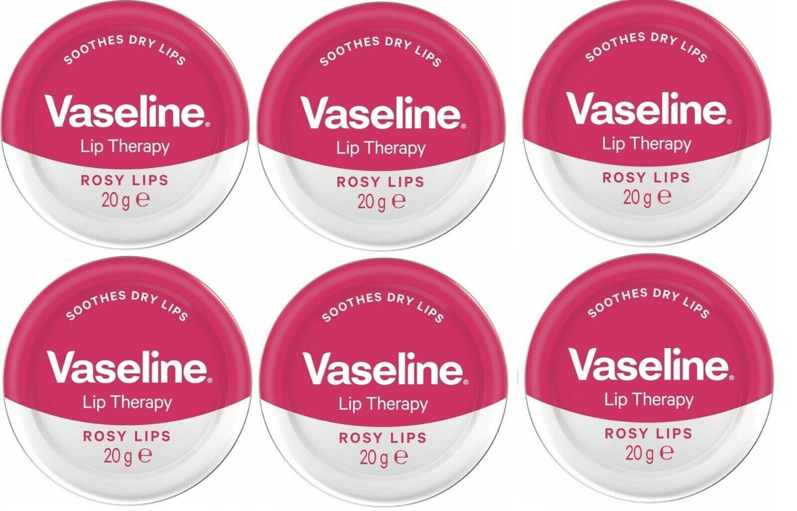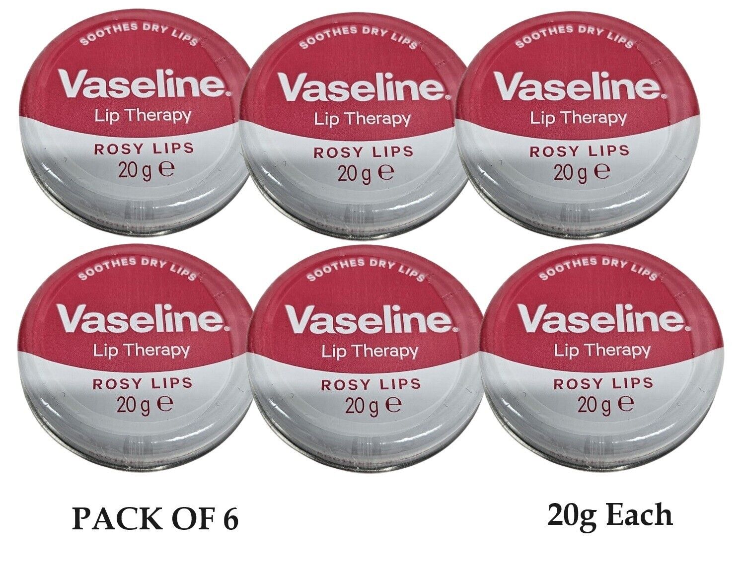 6 X Vaseline Lip Therapy Rosy Lips Tin 20g (Pack Of 6)