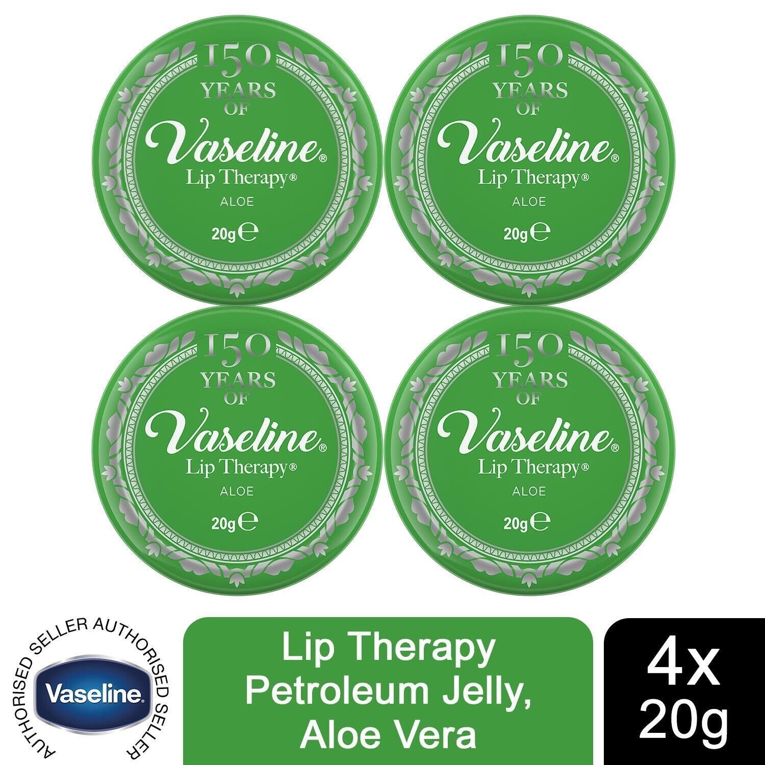 Vaseline Lip Therapy Petroleum Jelly, Aloe Vera, 4 Pack, 20gm