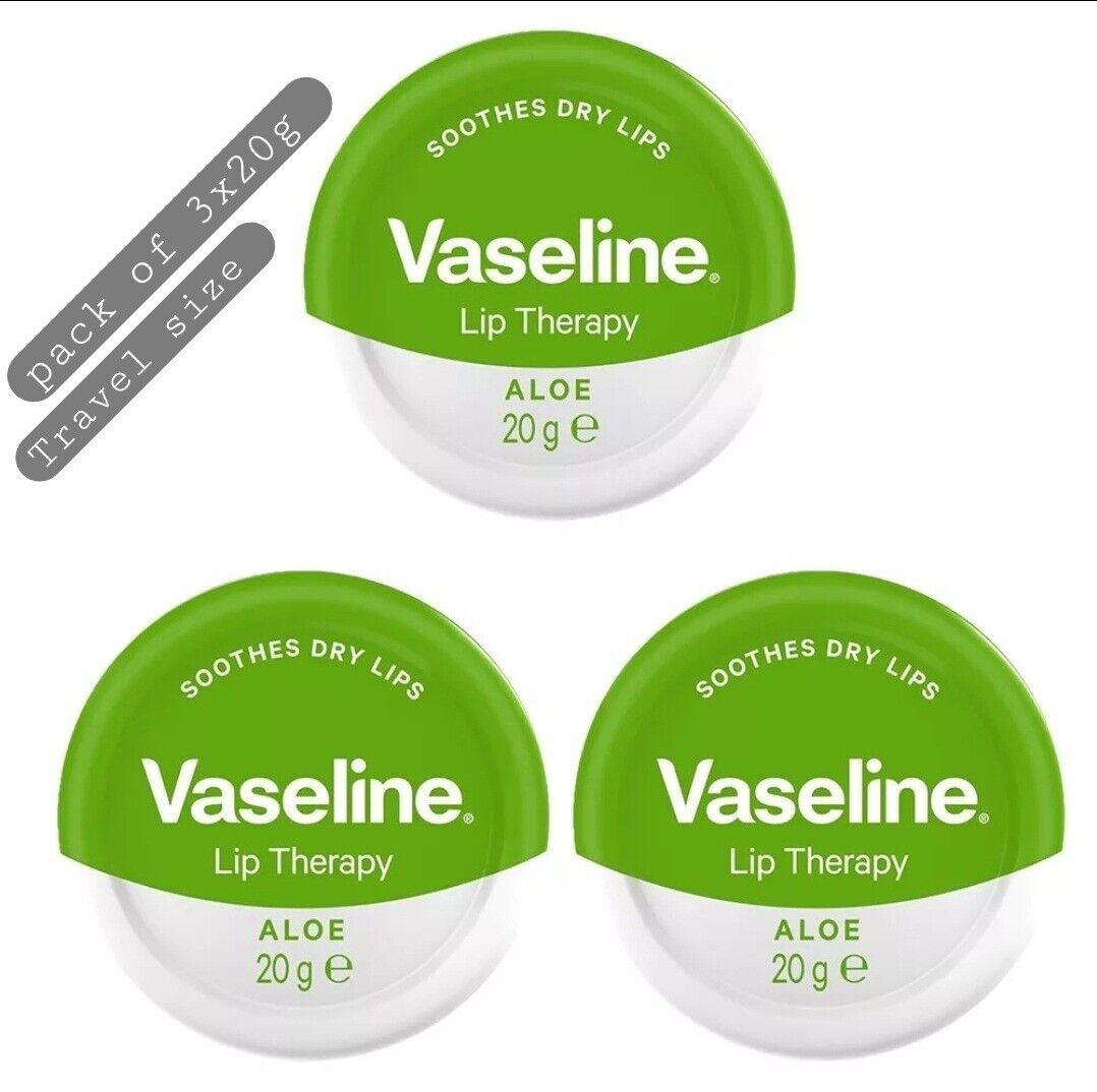 3x Vaseline Lip Balm Therapy Petroleum Jelly With Aloe Vera 20g Travel Size