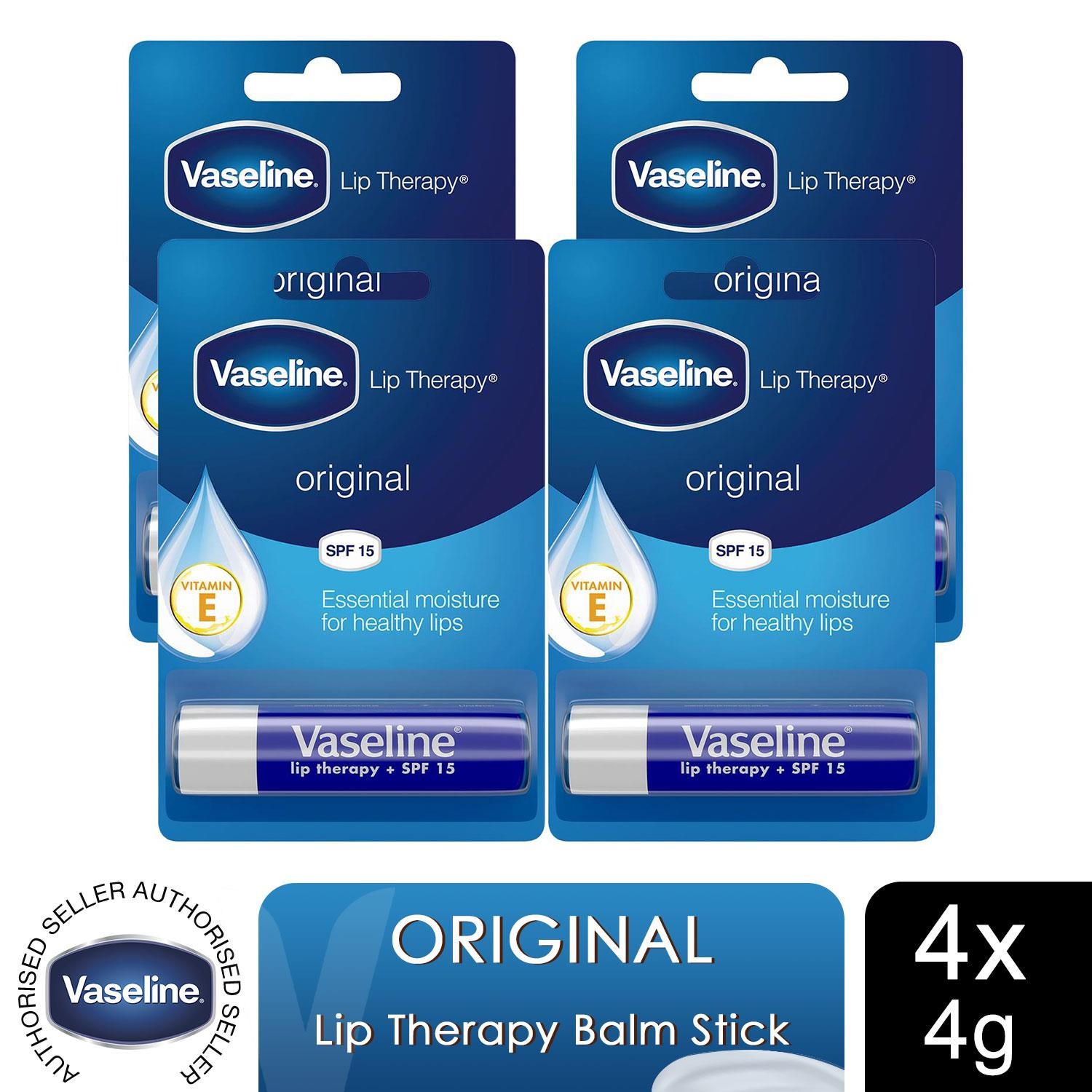 Vaseline Lip Therapy Balm Sticks, Original, 4 Pack, 4gm