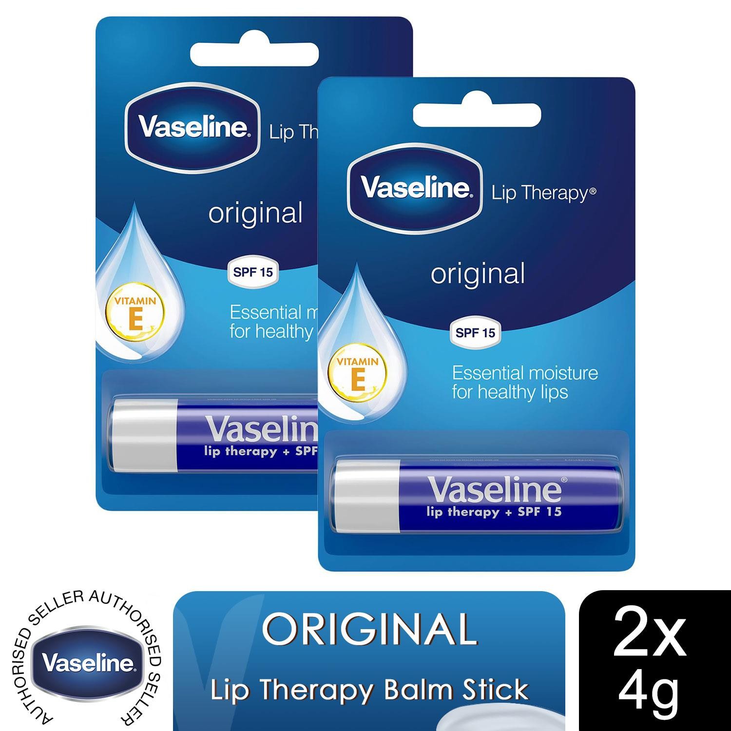 Vaseline Lip Therapy Balm Sticks, Original, 2 Pack, 4gm