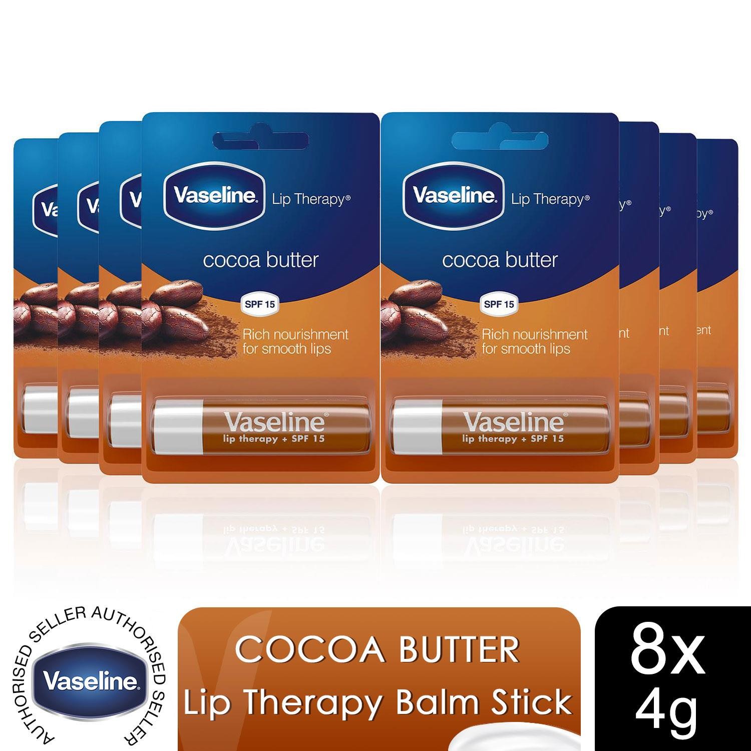 Vaseline Lip Therapy Balm Sticks, Cocoa Butter, 8 Pack, 4gm