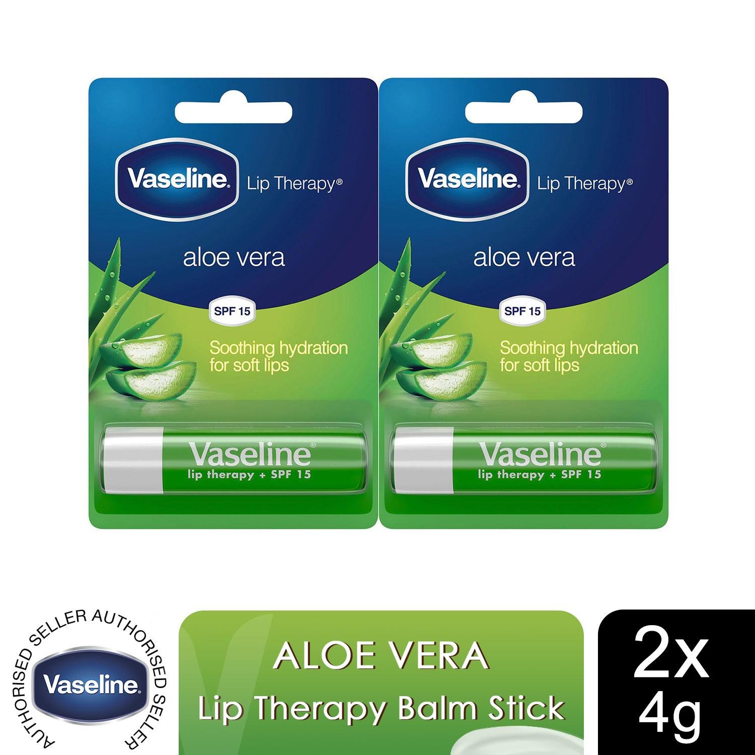 Vaseline Lip Therapy With Petroleum Jelly Balm Sticks, Aloe Vera, 2 Pack, 4gm
