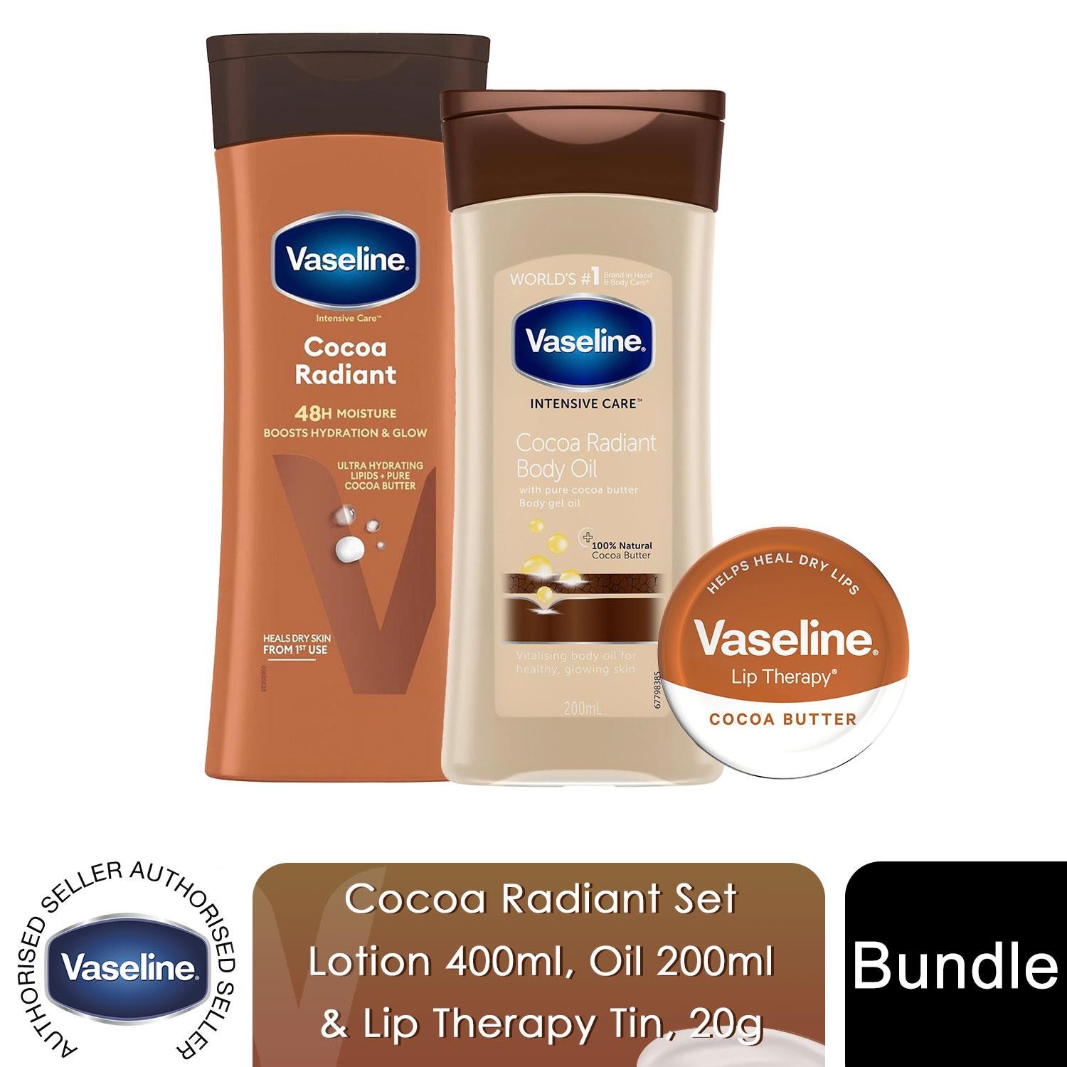 Vaseline Cocoa Bundle Set - Lotion 400ml, Oil 200ml & Lip Therapy w/ Jelly 20g
