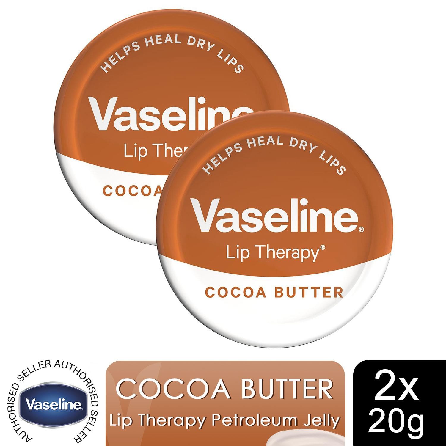Vaseline Lip Therapy Petroleum Jelly, Cocoa Butter, 2 Pack, 20gm