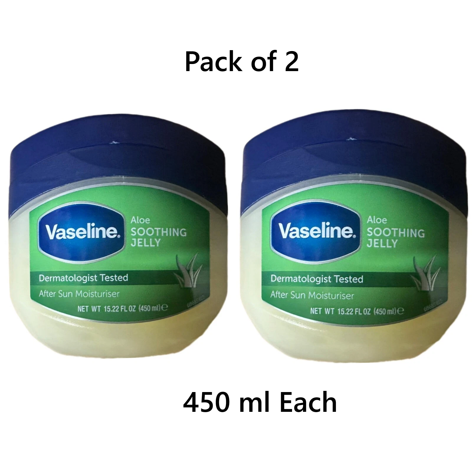 Vaseline ALOE SOOTHING Petroleum Jelly 450ml each (Pack of 2)