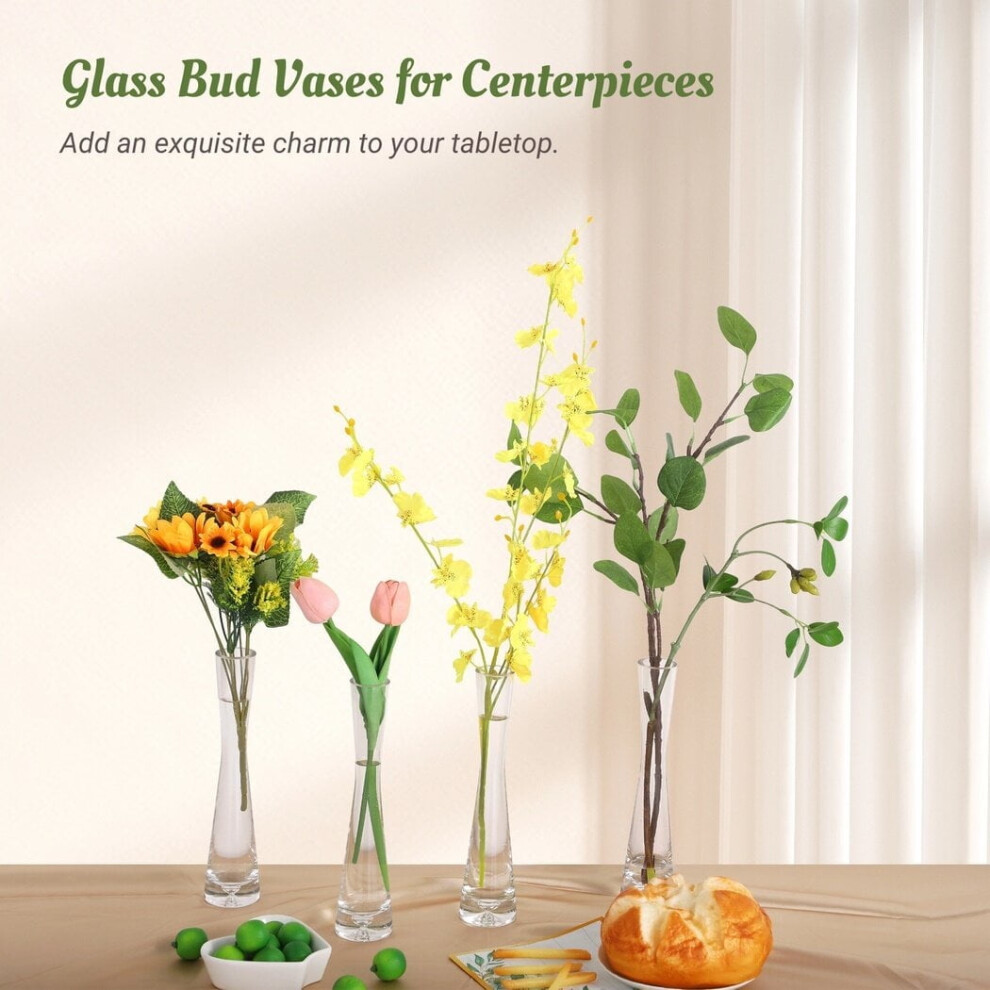 Vintage Style Glass Bud Vases, Durable Decorative Flower Vases For Office Home Decor, Events, Elegant Design Suitable As A Gift