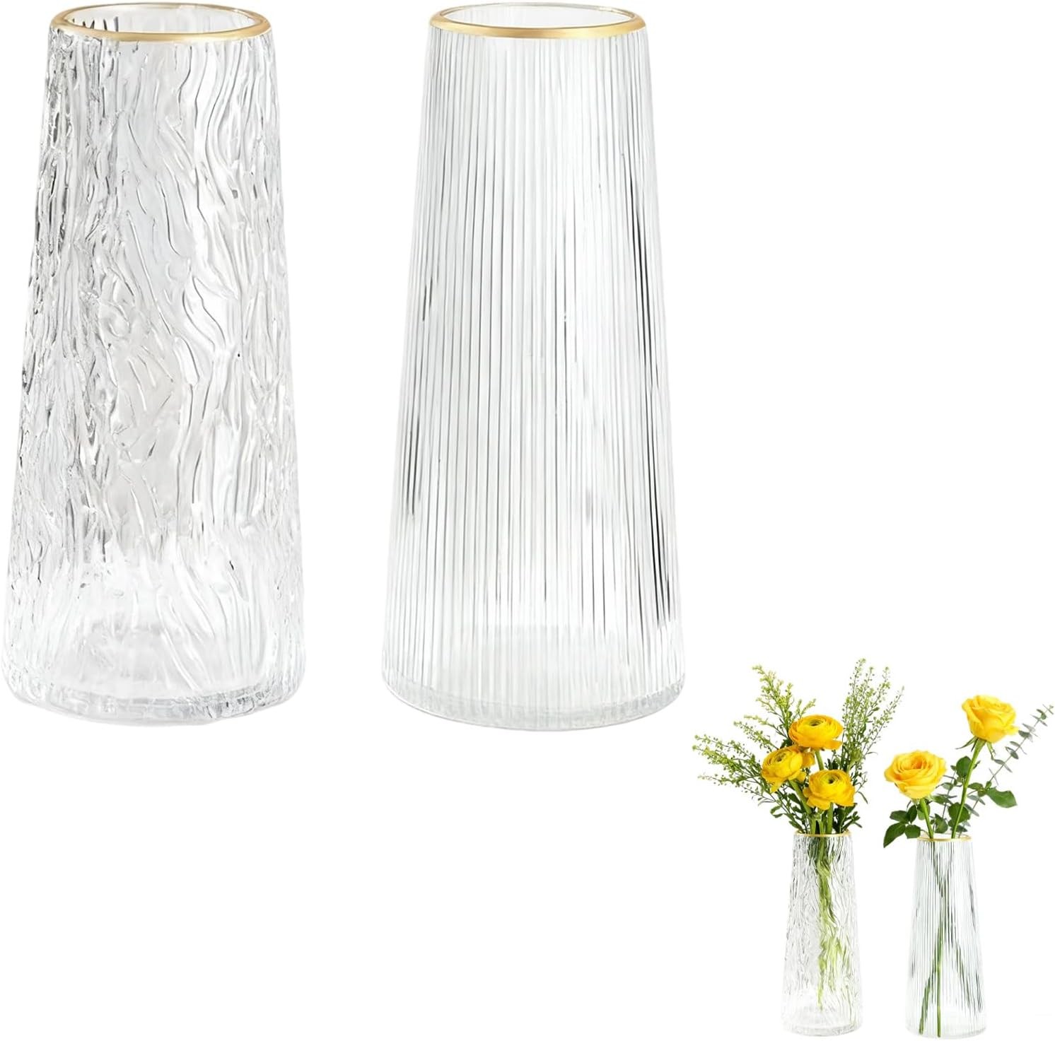 Glass Vases for Flowers, Flower Vases for Living Room - 2-Piece Set,Gold-Rimmed
