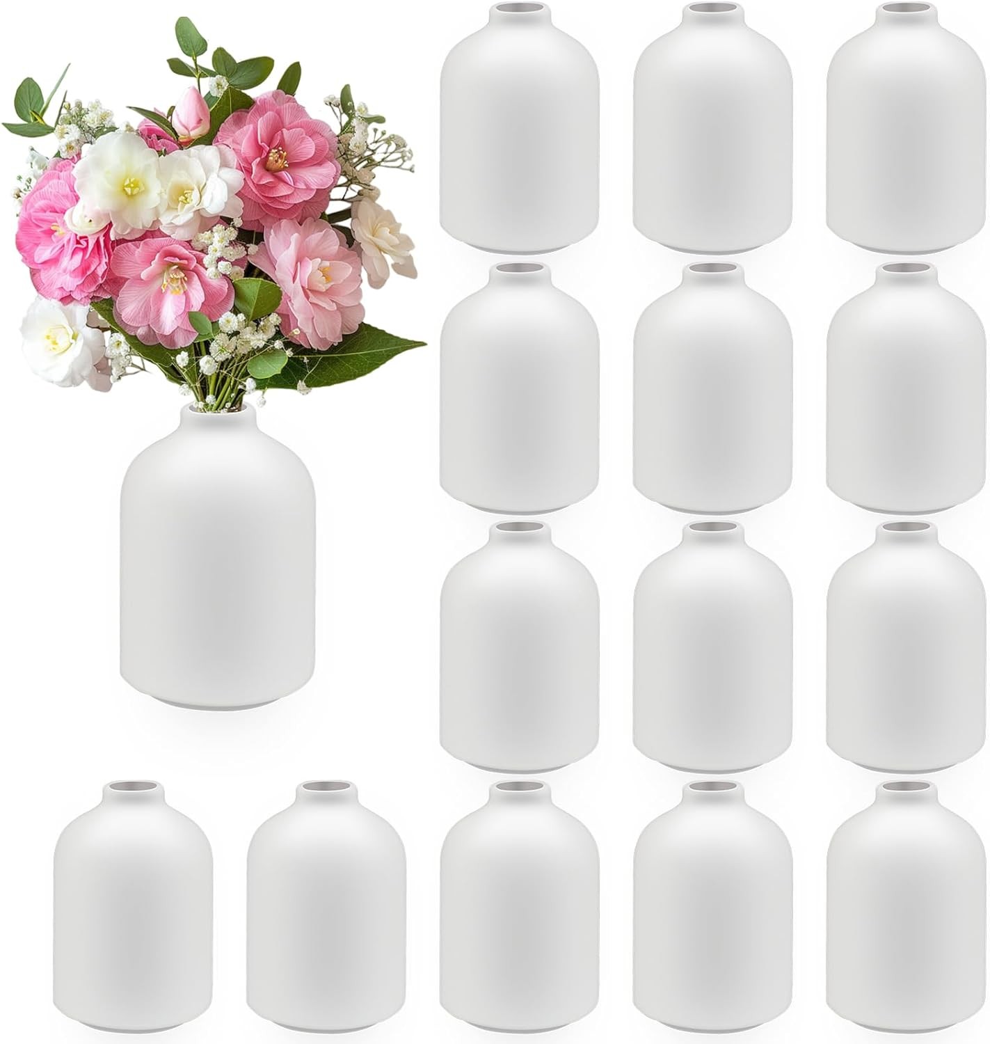 15 Pcs Small White Ceramic Vases Mini Boho Flower Vases Bulk 10 x 7 cm Table Ce