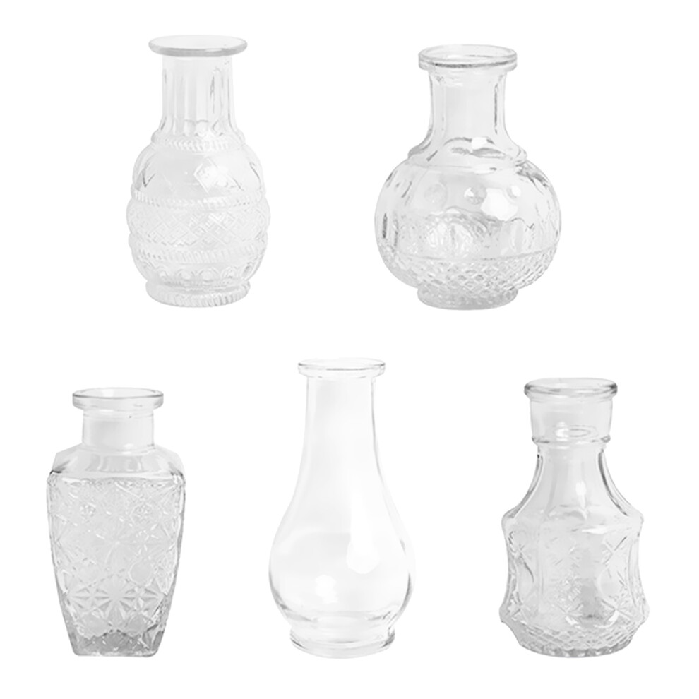 Vintage Glass Bud Vase, Clear Decorative Vases for Centerpiece Flower Vases, Multipurpose Small Vases, Wedding Table Decor, Set of 5