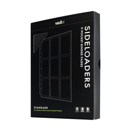 Vault X 9 Pocket Sideloading Pages for 3 Ring Binder, Double-Sided A4 Sideloaders, Storage for Collectible Card Games, Sports, TCG (Black, 50 Pack)
