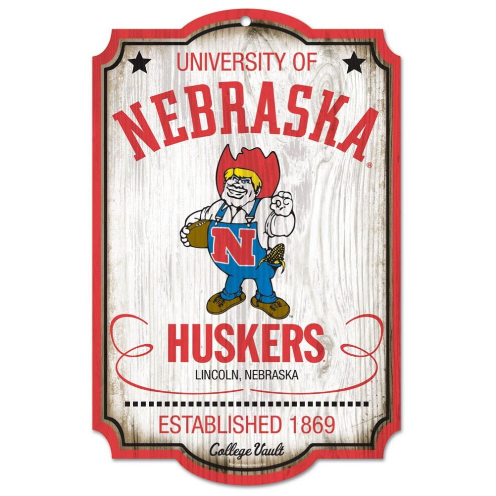 Nebraska Cornhuskers Wood Sign College Vault 11 x 17