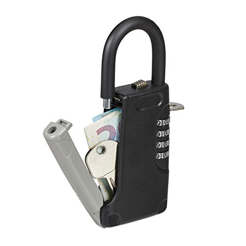 Relaxdays Key Safe with Hanger, 4-digit Numerical Code, Outside, Small Lockable Vault, HxWxD: 14.5 x 6 x 2 cm, Black, Aluminium