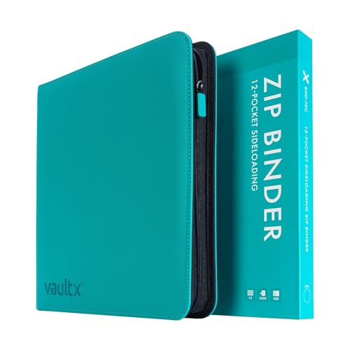 Vault X 12 Pocket Trading Card Zip Binder - 480 cards, Premium Exo-Tec Album Material, 20 Side-Loading Pages, Folder for Collectible Card Games, Sports, TCG (Teal)