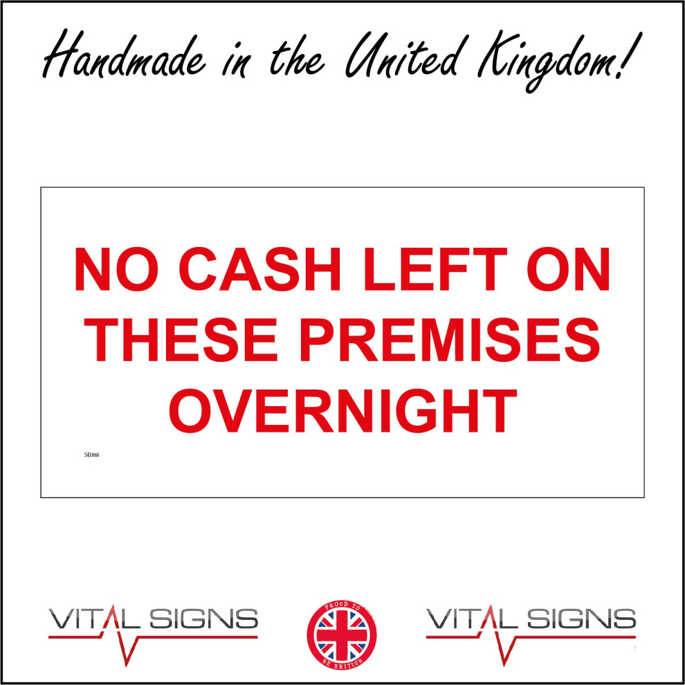 (200 x 100mm - 8 x 4, D - 1mm Pvc Foamex) SE088 No Cash Left On These Premises Overnight Sign Box Safe Strongbox Vault 600mm x 300mm B - Magnetic - Ve