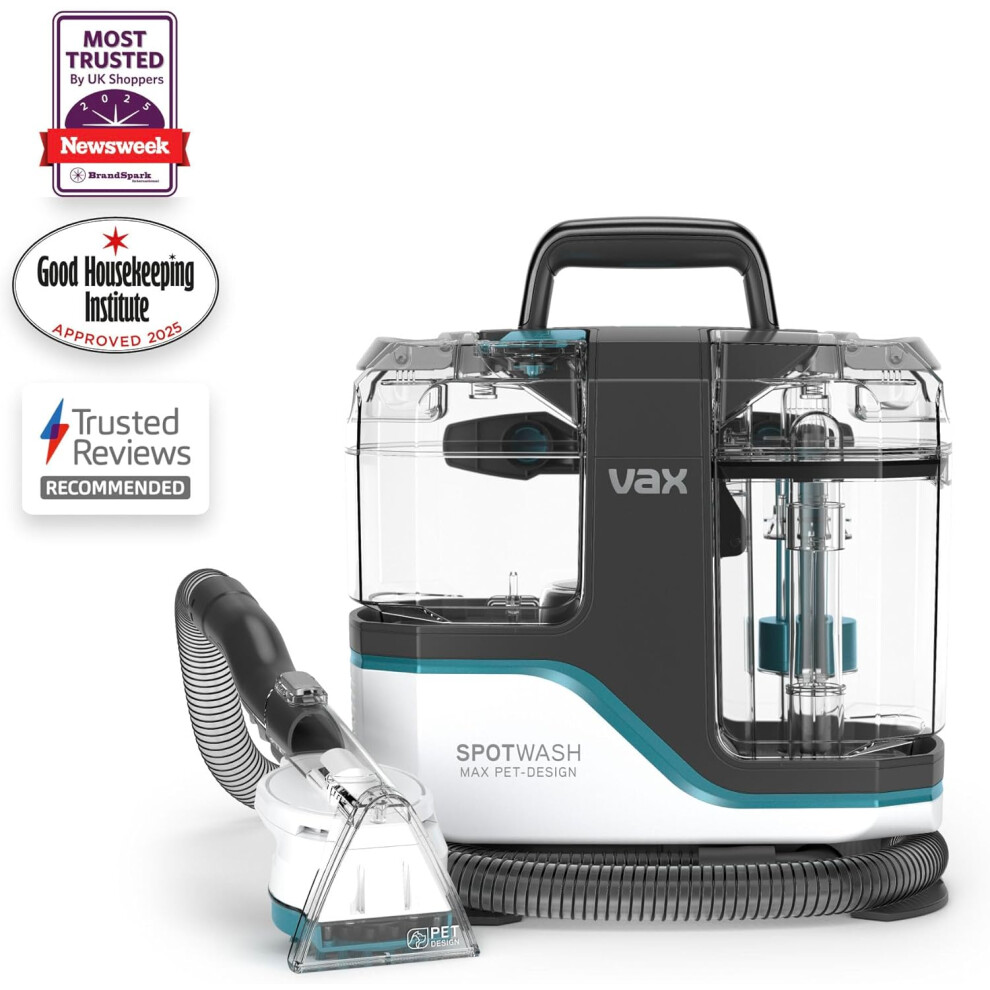 Vax 1-1-142784 SpotWash Max Pet-Design Spot Cleaner, Stain, Car, Upholstery, Sofa and Carpet Cleaning Machine XL Tanks, Motorised Tool and Antibacteri