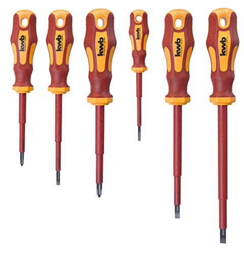 KWB VDE SCREWDRIVER SET 6-PIECE, FULLY INSULATED BLADES, EXTRA HARDENED, INCLUDING 2-COMPONENT HANDLE AND HANGING HOLE, SCREWDRIVER SET CV STEEL