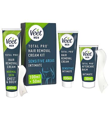 Veet Men Intimate Hair Removal Kit, with Aftercare Balm, Sensitive, 100 Ml + 50
