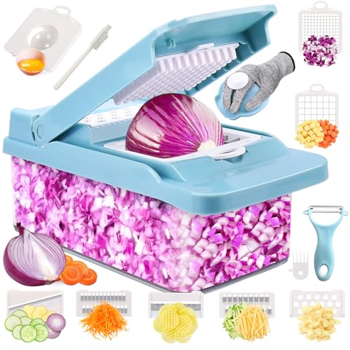 Swetfela Vegetable Chopper, 18 in 1 Chopper Vegetable Cutter, Mandoline Vegetable Slicer Multifunctional, Veg Chopper with 7 Blades, Mitten and Peeler, Food Chopper for Cutting Vegetables and Fruit