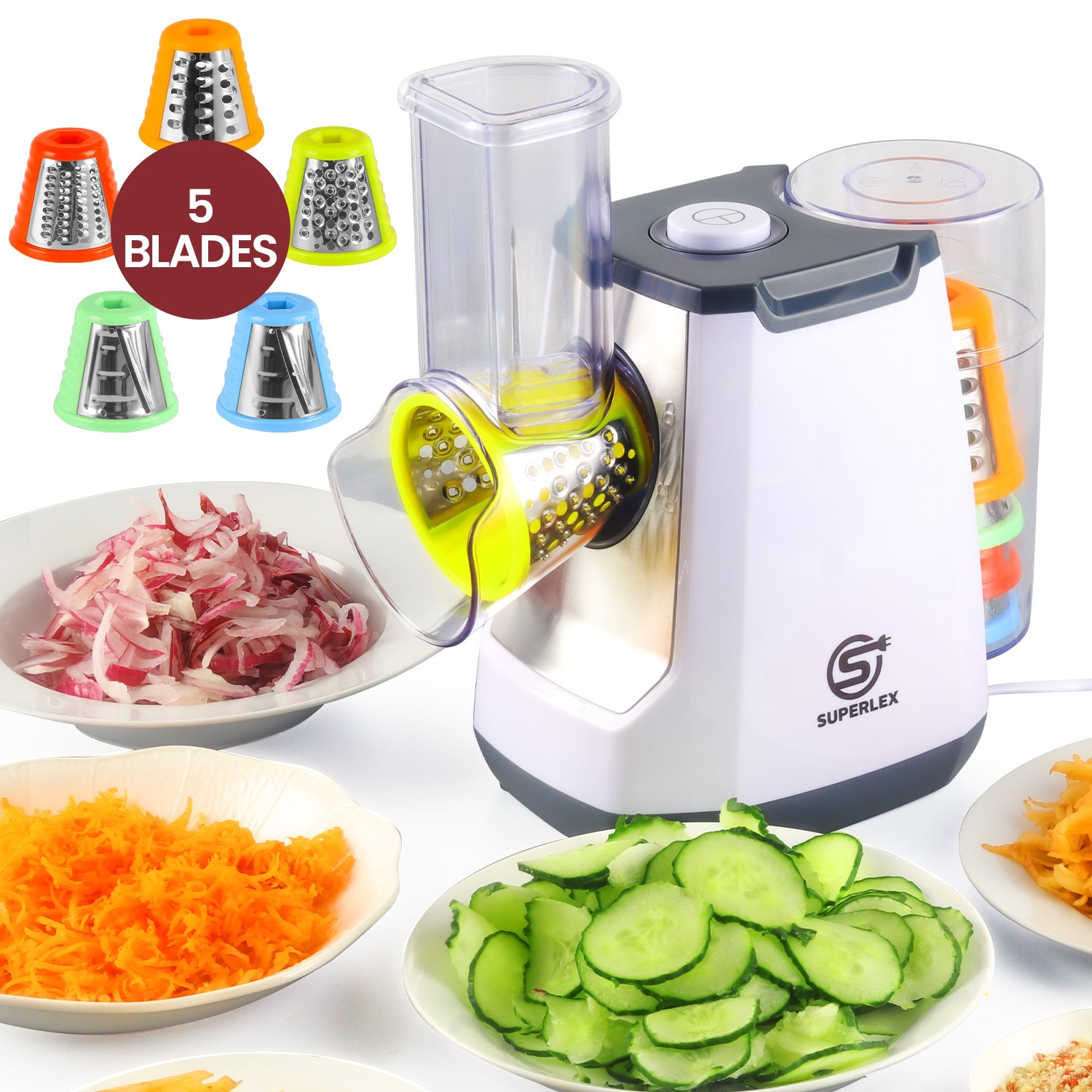 SUPERLEX 5in1 Electric Salad Maker Slicer Grater Dicer Fruit Cheese Veg Chopper