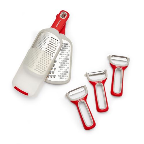 Morphy Richards Grater and Peeler Set, 7-in-1 Kitchen Utensils | Easy Storage | Soft-Touch Handles | Stackable Design | Safety Guard | Dishwasher Safe | Cheese, Veg & Julienne Prep | 869004