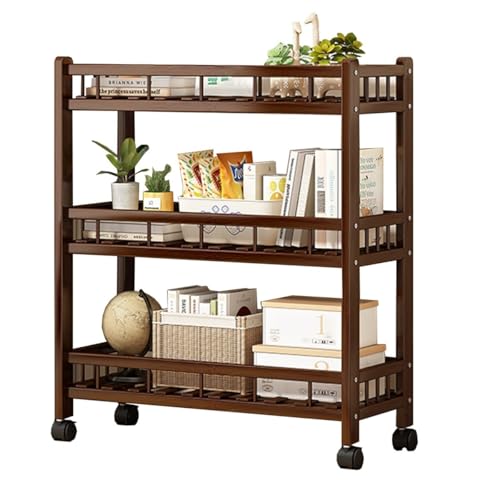 ZJYIGOWL Storage Trolley On Wheels Wood Kitchen Trolleys Utility Rolling Cart With Handle Bathroom Cart Veg Rack And Multi-Purpose Organizer For Snack, Makeup, Book(3-Tier)