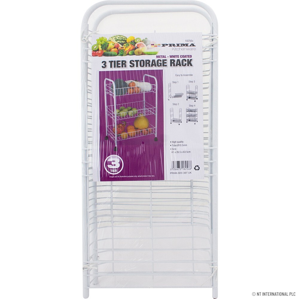 (White, 3 Tiers) Kitchen Trolley Basket Rack Veg Fruit Holder Shelf