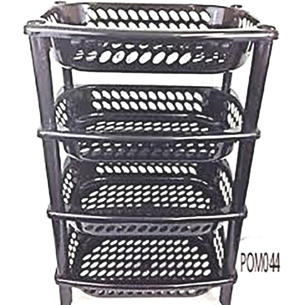 BLACK 4 TIER FRUIT VEG BASKET STORAGE RACK PLASTIC KITCHEN VEGETABLE TROLLEY